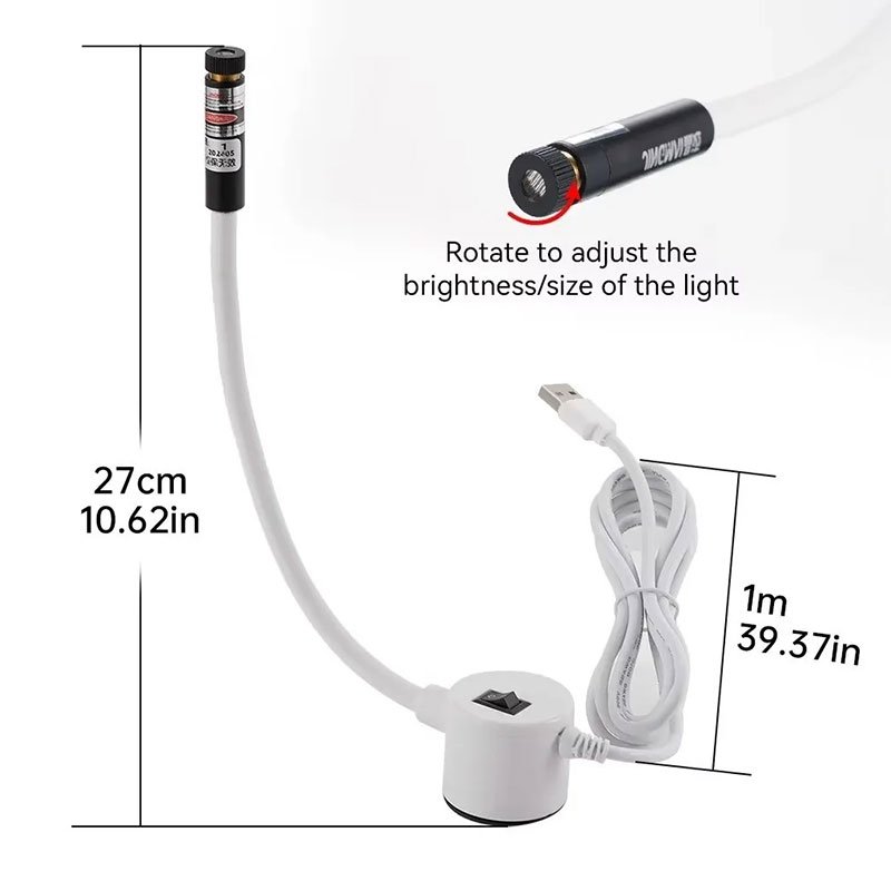 Universal Magnetic Mount: Equipped with a strong magnetic base and a flexible, bendable arm. This allows for secure attachment to most sewing machines, sergers, and embroidery machines, and the laser can be positioned at any angle for optimal visibility .