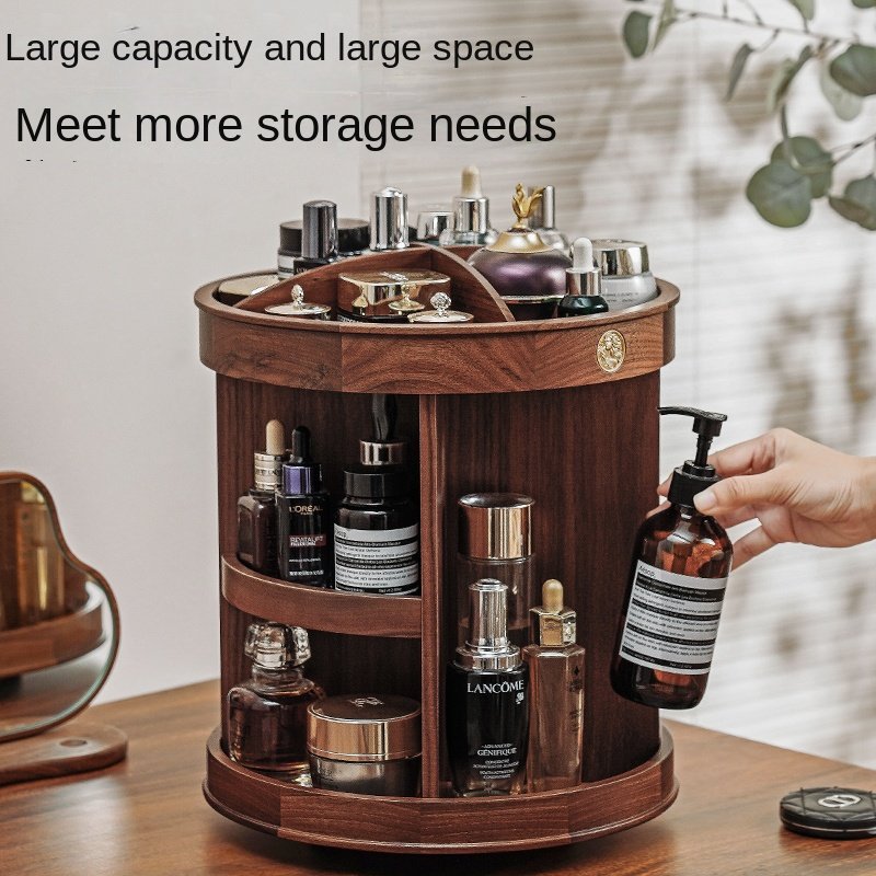 Color: [North American Black Walnut 3-layer Round] Cosmetics Storage Rack