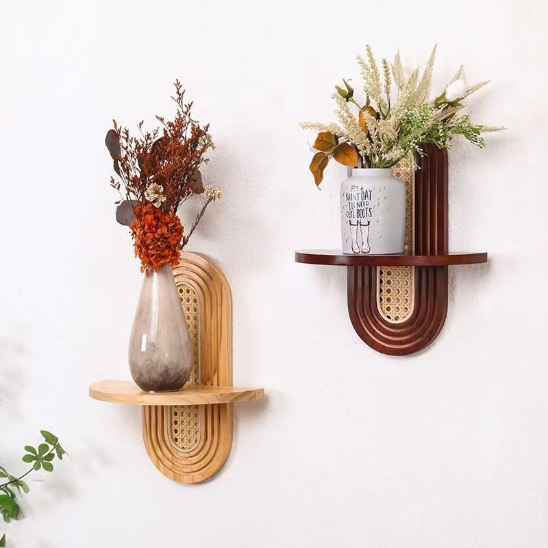 Solid wood wall decoration shelf wall mounted with green plants and flower racks